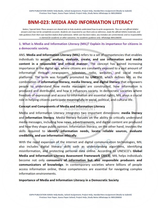 | Product | IGNOU BNM-023 Solved Assignment 2026 English Medium |
