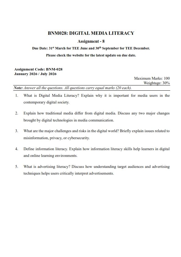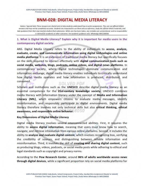 Are you searching for the IGNOU BNM-028 Solved Assignment 2026 English Medium? You are at the right place. This instant download PDF contains complete and accurate answers prepared by experienced academic experts as per the latest IGNOU guidelines. All solutions are written in simple and easy language to help you understand the subject better and score good marks.