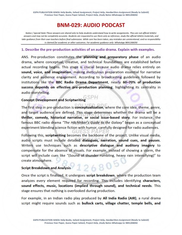 | Product | IGNOU BNM-029 Solved Assignment 2026 English Medium |