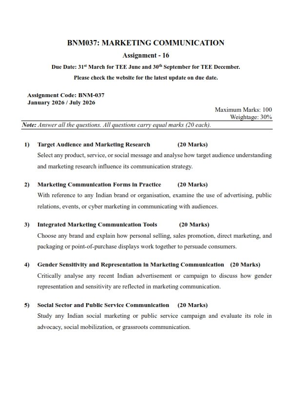 Are you searching for the IGNOU BNM-037 Solved Assignment 2026 English Medium? You are at the right place. This instant download PDF contains complete and accurate answers prepared by experienced academic experts as per the latest IGNOU guidelines. All solutions are written in simple and easy language to help you understand the subject better and score good marks.