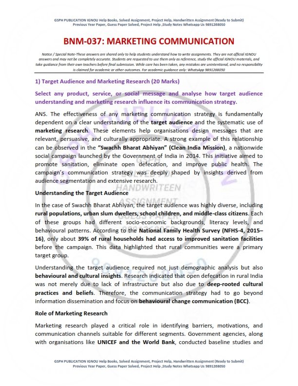| Product | IGNOU BNM-037 Solved Assignment 2026 English Medium |