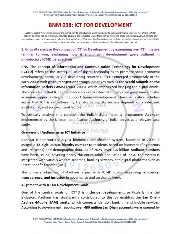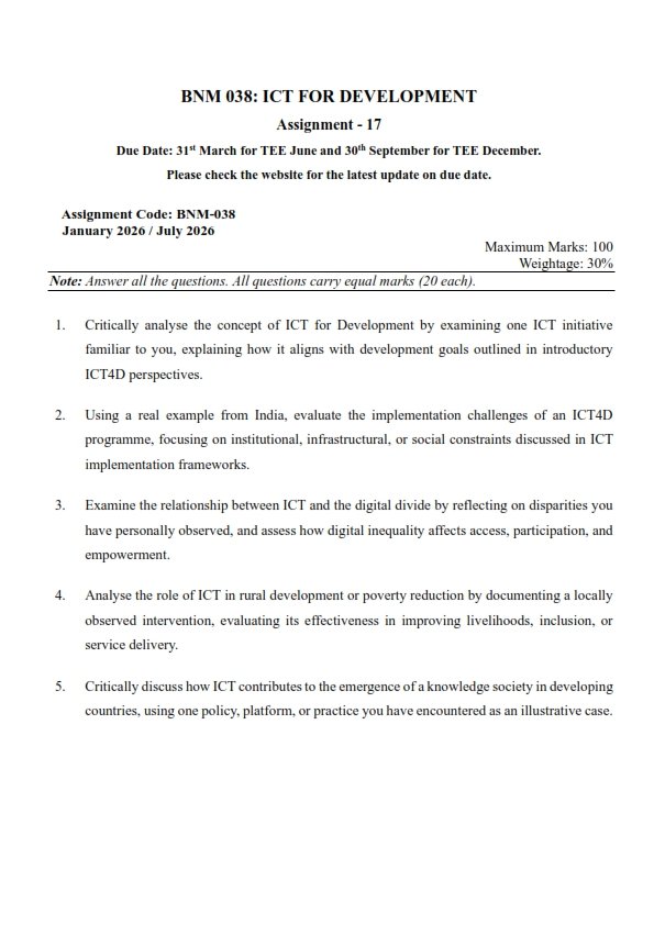 Are you searching for the IGNOU BNM-038 Solved Assignment 2026 English Medium? You are at the right place. This instant download PDF contains complete and accurate answers prepared by experienced academic experts as per the latest IGNOU guidelines. All solutions are written in simple and easy language to help you understand the subject better and score good marks.