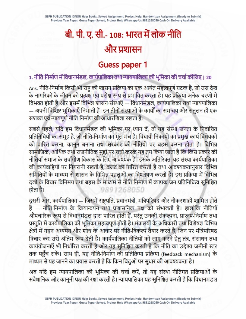 Prepare smartly for your IGNOU exams with our IGNOU BPAC-108 Guess Paper Solved Hindi Medium, specially designed for BAPAH students. This exam-focused guess paper provides important, expected questions with solved answers, helping you revise effectively and score better with confidence. The PDF is available for instant download after payment, making it fast, affordable, and convenient.
