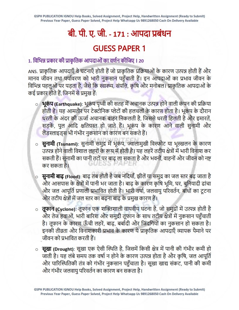 IGNOU BPAG-171 Guess Paper Solved HINDI Medium| Instant PDF Download