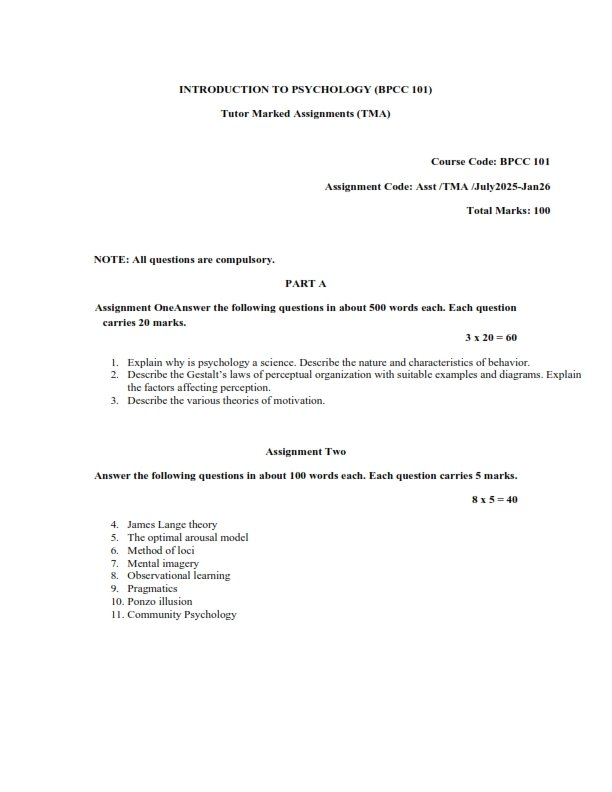 Are you searching for the IGNOU BPCC-101 Solved Assignment 2025-26 English Medium? You are at the right place. This instant download PDF contains complete and accurate answers prepared by experienced academic experts as per the latest IGNOU guidelines. All solutions are written in simple and easy language to help you understand the subject better and score good marks.