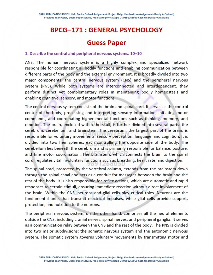 IGNOU BPCG-171 Guess Paper Solved English Medium| Instant PDF Download