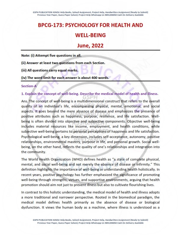 IGNOU BPCG-173 Previous Year Solved Question Paper English Medium (JUNE 2022)