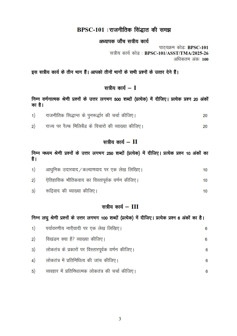 Get IGNOU BPSC-101 Solved Assignment 2025-26 Hindi Medium