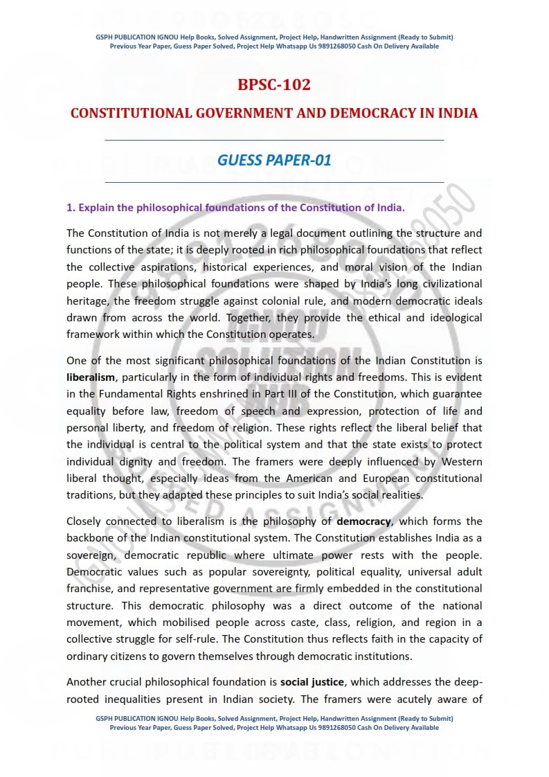 Prepare smartly for your IGNOU exams with our IGNOU BPSC-102 Guess Paper Solved English Medium, specially designed for BAPSH students. This exam-focused guess paper provides important, expected questions with solved answers, helping you revise effectively and score better with confidence. The PDF is available for instant download after payment, making it fast, affordable, and convenient.