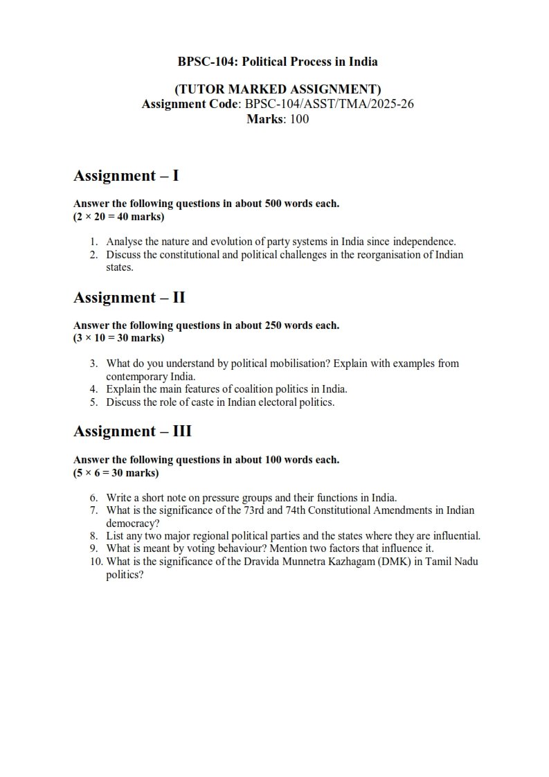| Product | IGNOU BPSC-104 Solved Assignment 2025-26 English Medium |