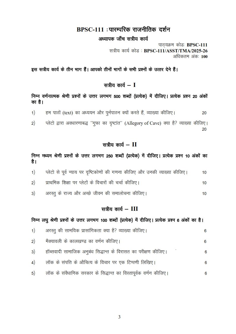 IGNOU BPSC-111 Solved Assignment 2025-26 Hindi Medium