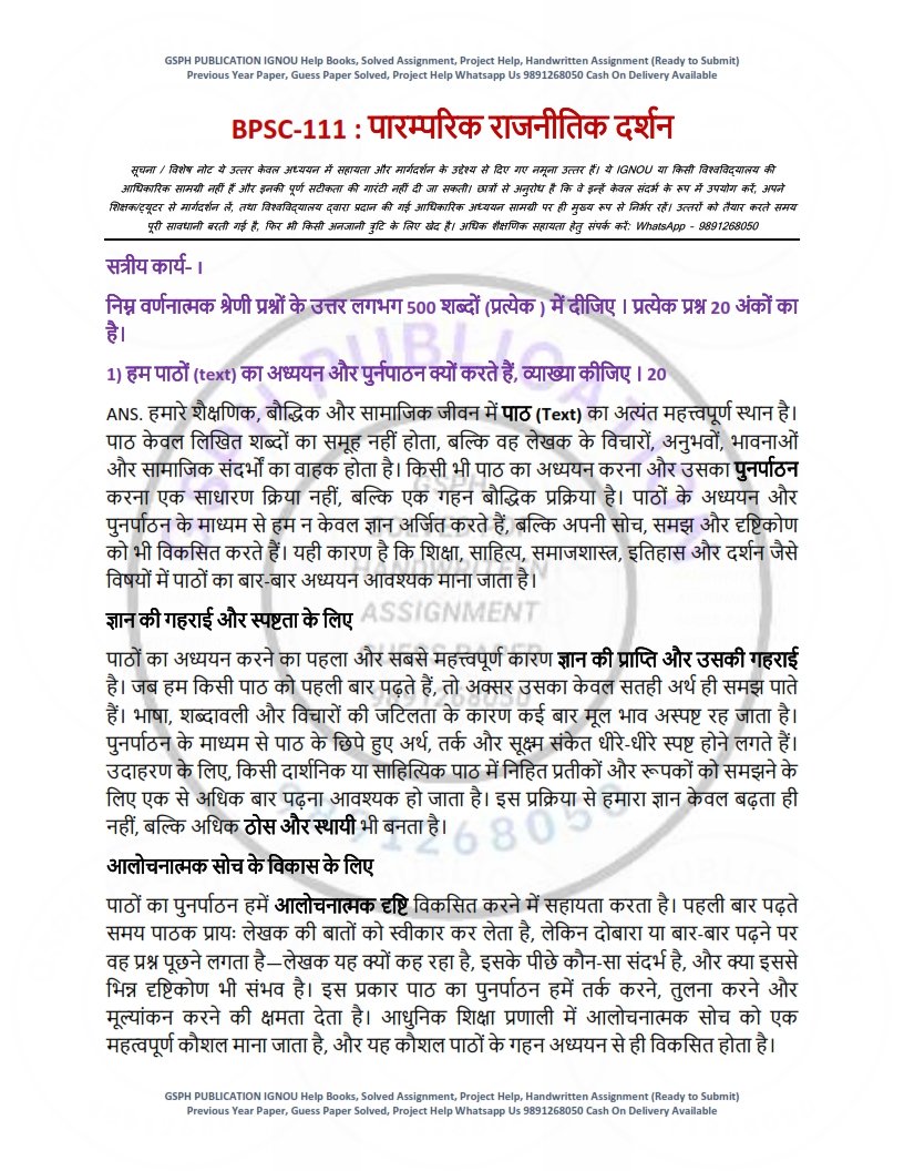ProductIGNOU BPSC-111 Solved Assignment 2025-26 Hindi Medium
