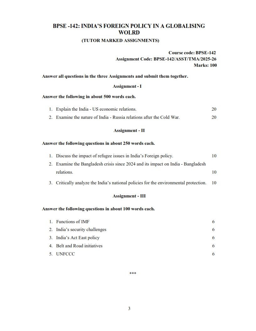 Get IGNOU BPSE-142 Solved Assignment 2025-26 English Medium