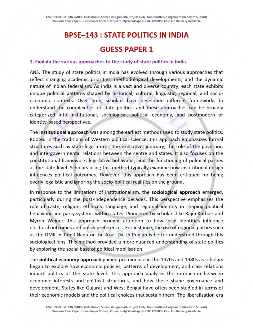 Note:-The IGNOU Guess Paper Solved (Subject) is provided strictly for reference and practice purposes only. It is intended to support students in their exam preparation and should not be considered as a guarantee that the exam questions will come from this paper. Students should use it as a supplementary resource alongside their official IGNOU study material.