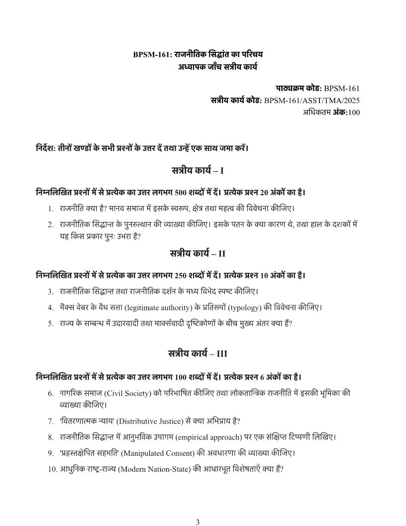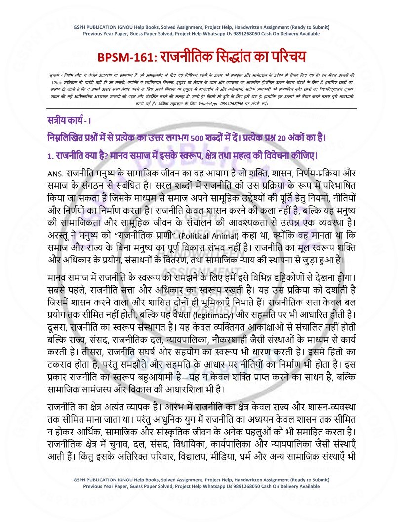 Get IGNOU BPSM-161 Solved Assignment 2025 Hindi Medium