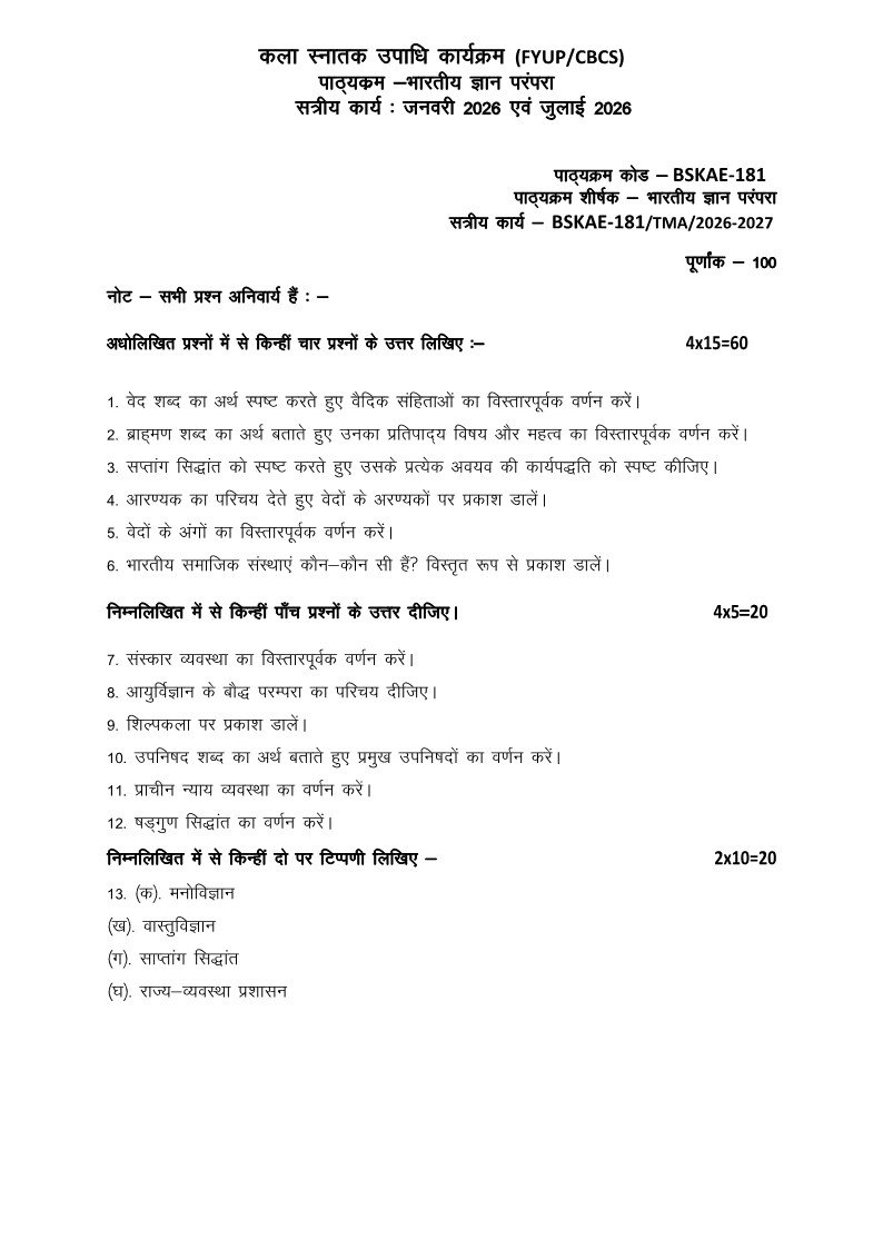 | Product | IGNOU BSKAE-181 Solved Assignment 2026 Hindi Medium |