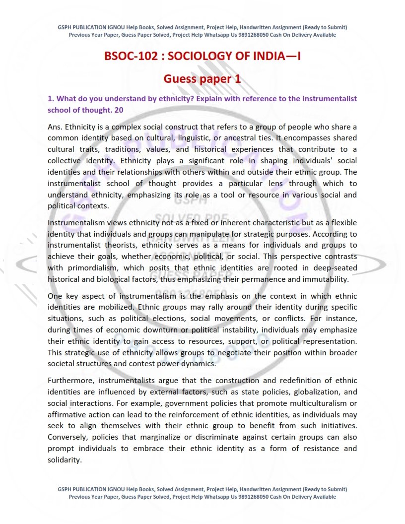 IGNOU BSOC-102 Guess Paper Solved English Medium | Instant PDF Download