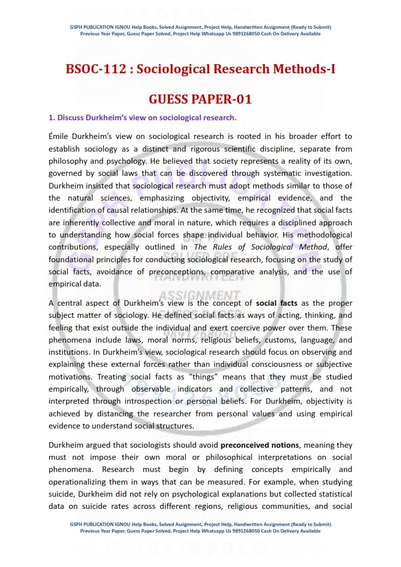 IGNOU BSOC-112 Guess Paper Solved English Medium | Instant PDF Download