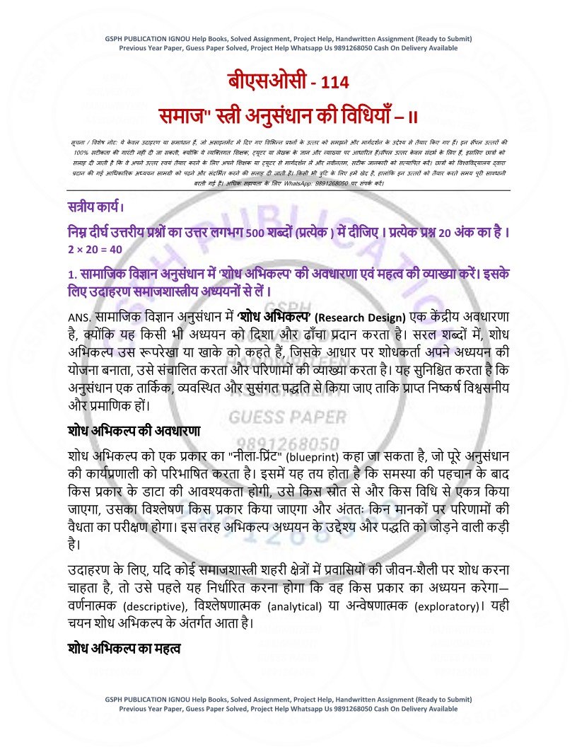 Product IGNOU BSOC-114 Solved Assignment 2025-26 Hindi Medium