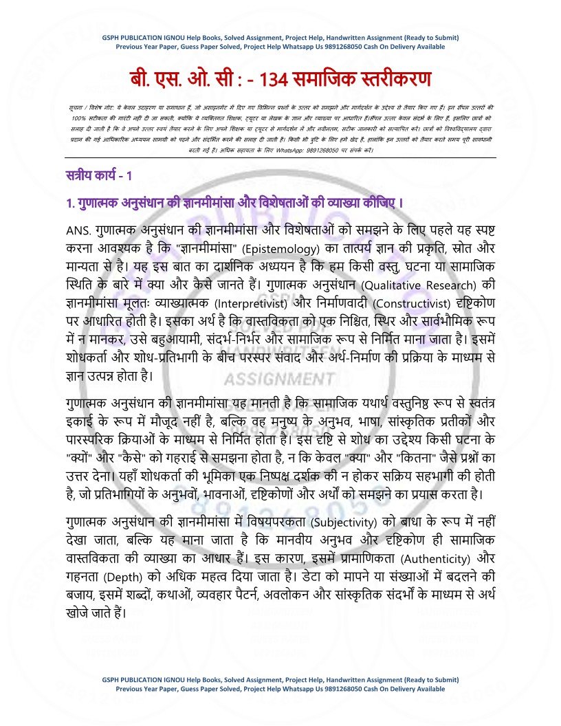 Product IGNOU BSOC-134 Solved Assignment 2025-26 Hindi Medium