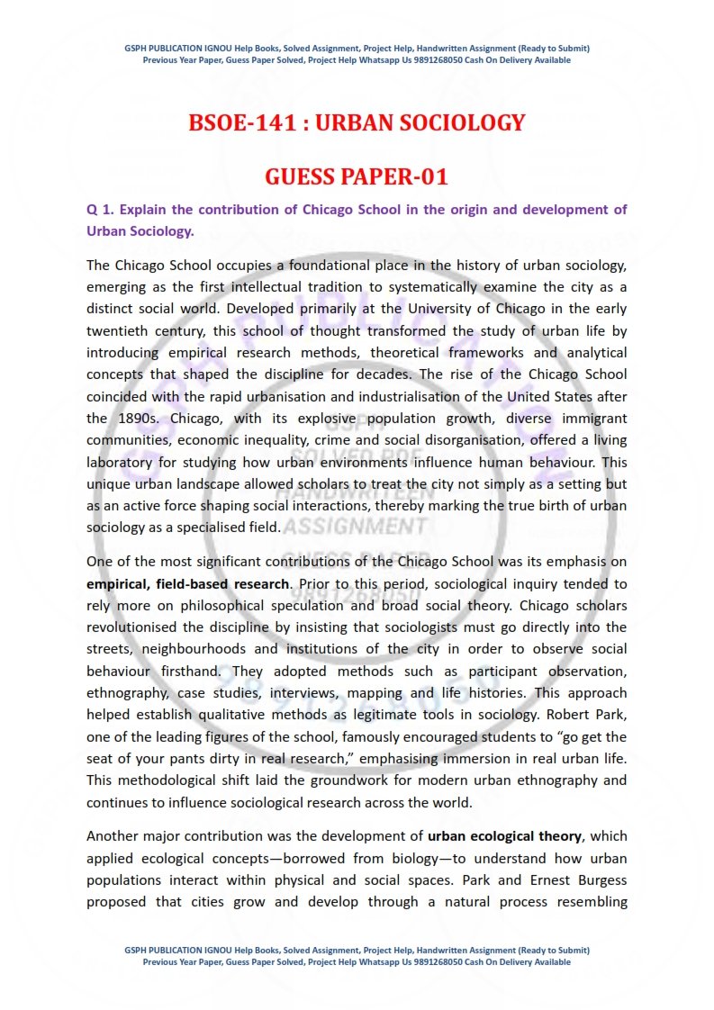 IGNOU BSOC-106 Guess Paper Solved English Medium