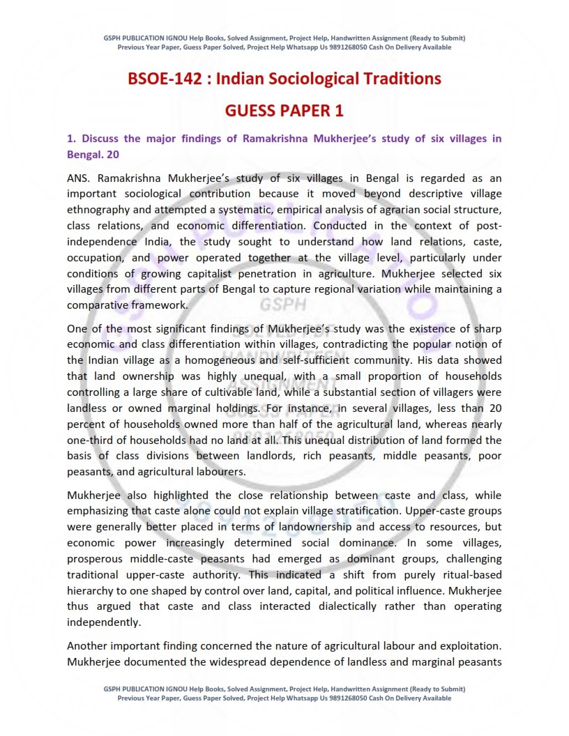 Note:-The IGNOU Guess Paper Solved (Subject) is provided strictly for reference and practice purposes only. It is intended to support students in their exam preparation and should not be considered as a guarantee that the exam questions will come from this paper. Students should use it as a supplementary resource alongside their official IGNOU study material.