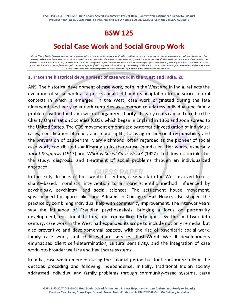 ProductIGNOU BSW-125 Solved Assignment 2025-26 English Medium