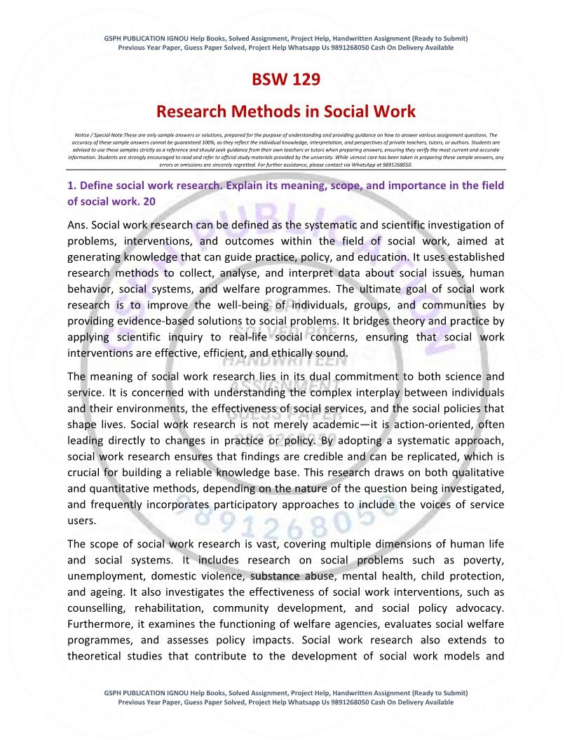 | Product | IGNOU BSW-129 Solved Assignment 2025-26 English Medium |