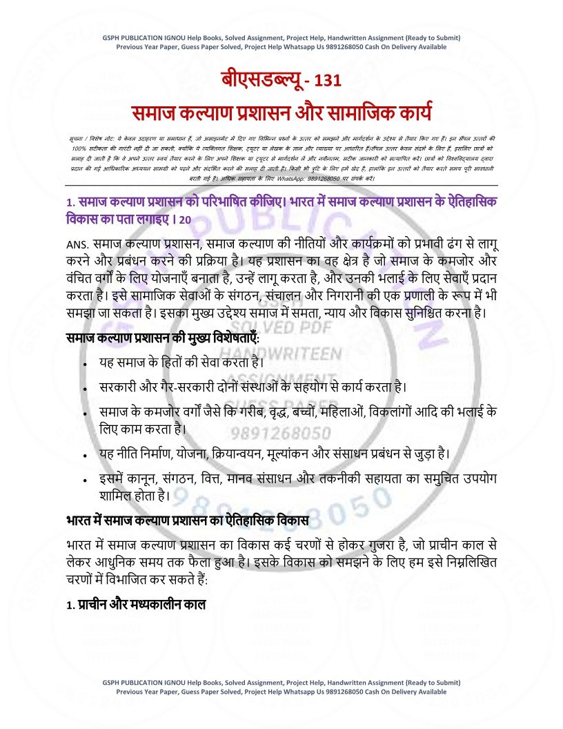 | Product | IGNOU BSW-131 Solved Assignment 2025-26 Hindi Medium |