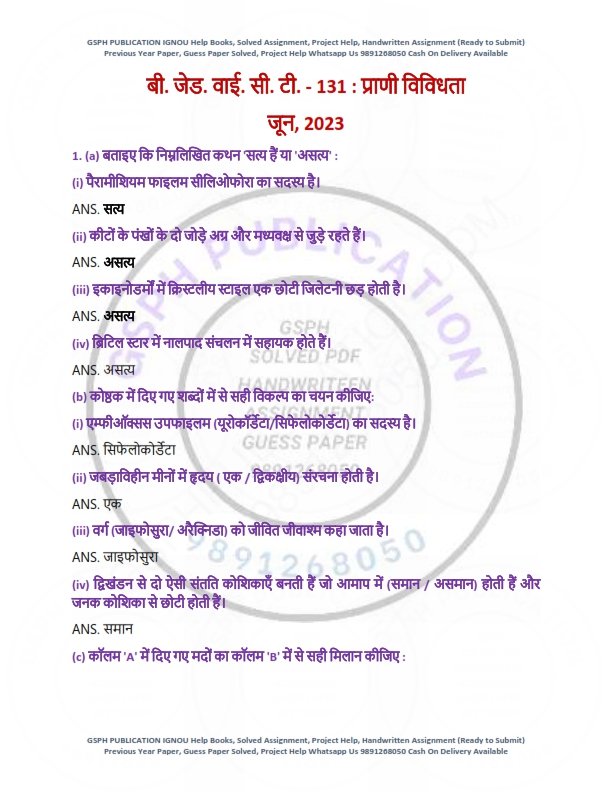 | Product | IGNOU BZYCT-131 Previous Year Solved Question Paper Hindi Medium (JUNE 2023) |