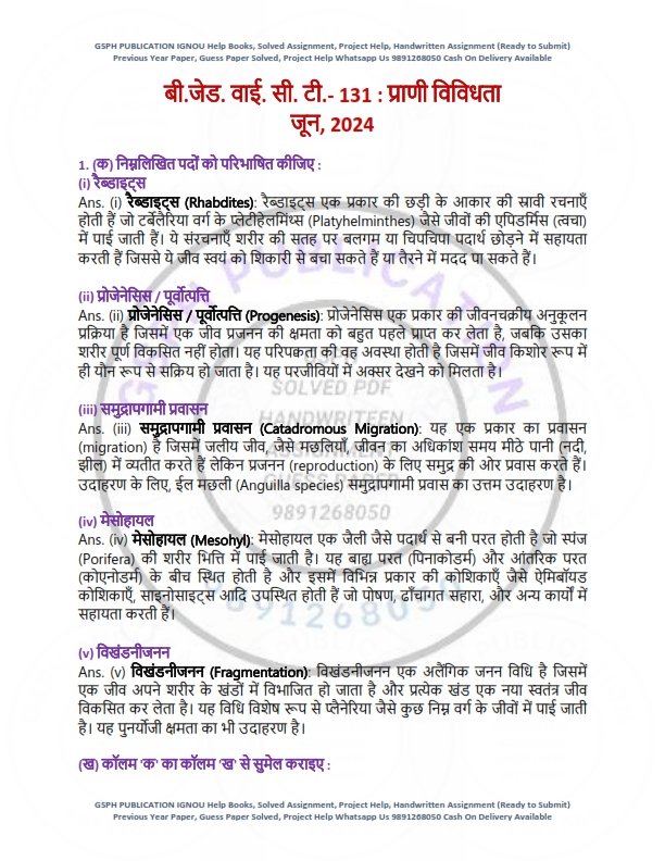 Are you a student of IGNOU BZYCT-131 Previous Year Solved Question Paper Hindi Medium (JUNE 2024) Look no further! Our IGNOU Previous Year Solved PDF provides the most comprehensive and reliable solutions, complete with detailed explanations and step-by-step guidance.