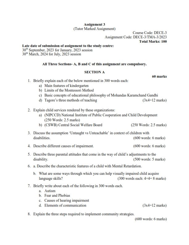 Get IGNOU DECE-03 Solved Assignment January & July 2023 English Medium Downloadable PDF