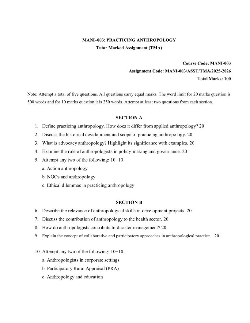 Get IGNOU MANI-003 Solved Assignment 2025-26 English Medium