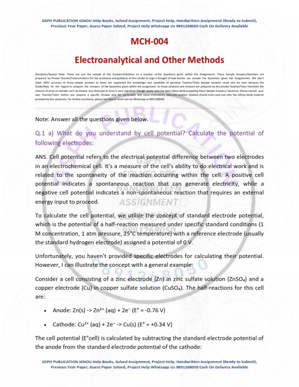 IGNOU MCH-002 Solved Assignment 2024 English Medium