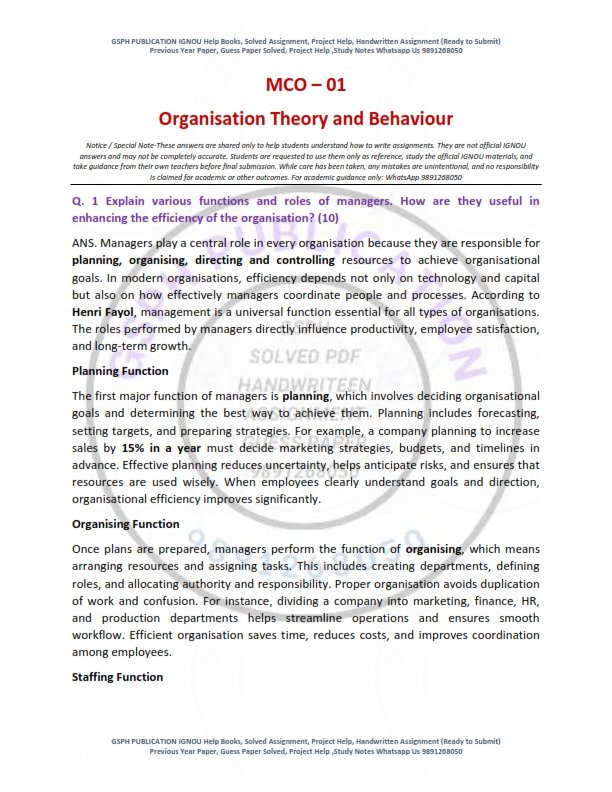 Are you searching for the IGNOU MCO-01 Solved Assignment 2026 English Medium? You are at the right place. This instant download PDF contains complete and accurate answers prepared by experienced academic experts as per the latest IGNOU guidelines. All solutions are written in simple and easy language to help you understand the subject better and score good marks.