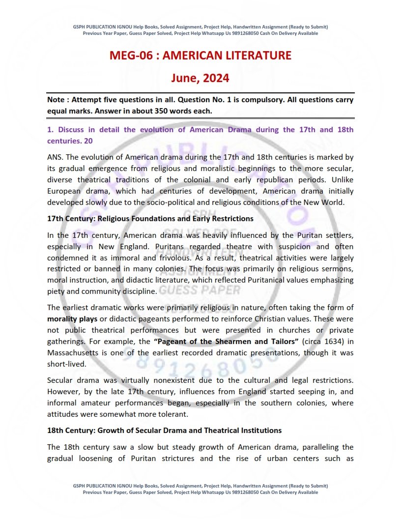 Disclaimer: The Previous Year Solved Papers are prepared using IGNOU books and online sources. They must be downloaded within 7 days of payment, either from the website or the link sent via email. A full refund is offered in case of any incorrect Previous Year Solved Papers.