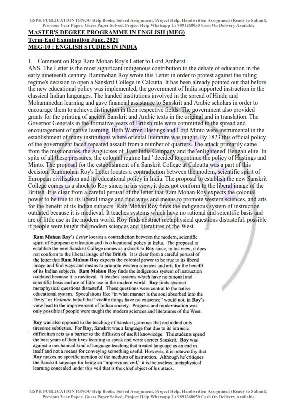 Get IGNOU MEG-10 Previous Year Solved Question Paper (June 2021) English Medium Soft Copy ready for Download in PDF (June 2022 sessions)