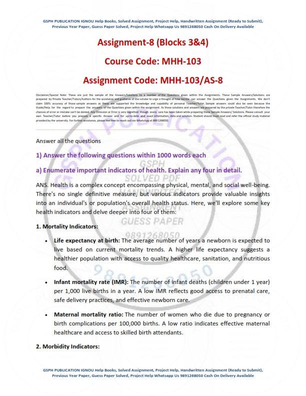 | Product | IGNOU MHH-103 AS-8 Solved Assignment 2024 English Medium |