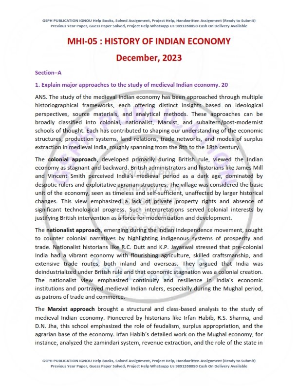 Disclaimer: The Previous Year Solved Papers are prepared using IGNOU books and online sources. They must be downloaded within 7 days of payment, either from the website or the link sent via email. A full refund is offered in case of any incorrect Previous Year Solved Papers.