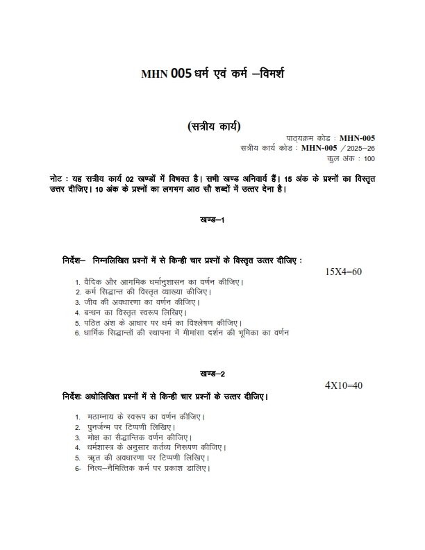| Product | IGNOU MHN-005 Solved Assignment 2025-26 Hindi Medium |