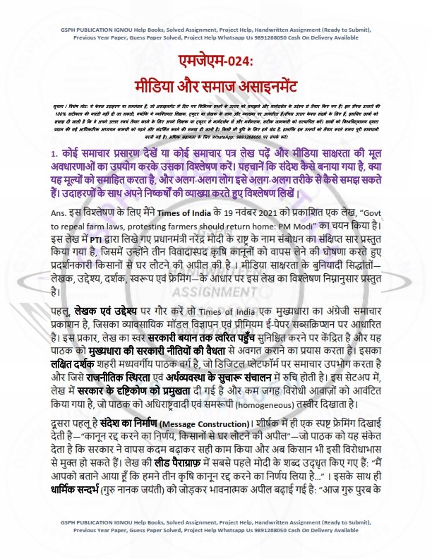 | Product | IGNOU MJM-024 Solved Assignment 2025 Hindi Medium |