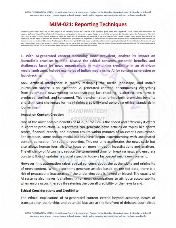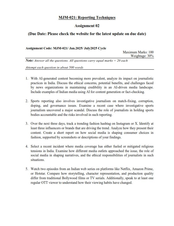 Product | IGNOU MJM-21 Solved Assignment 2025 English Medium |