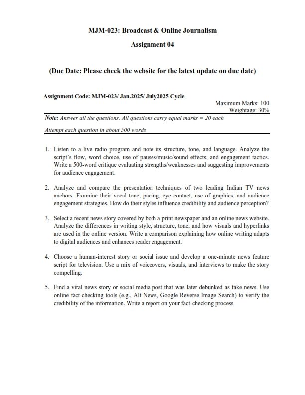 IGNOU MJM-23 Solved Assignment 2025 English Medium