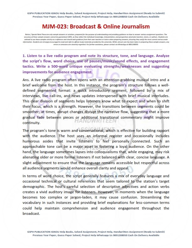 This item: IGNOU MJM-23 Solved Assignment 2025 English Medium