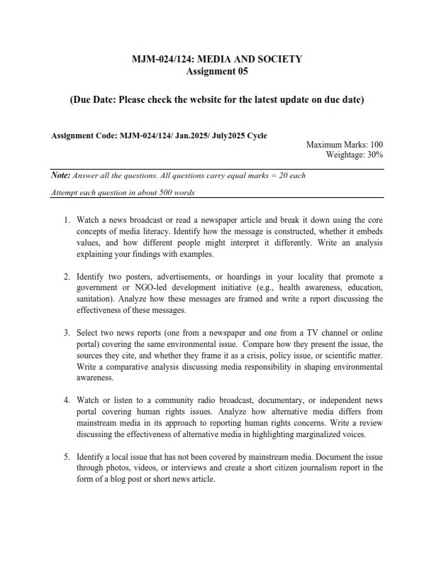 Product | IGNOU MJM-24 Solved Assignment 2025 English Medium |