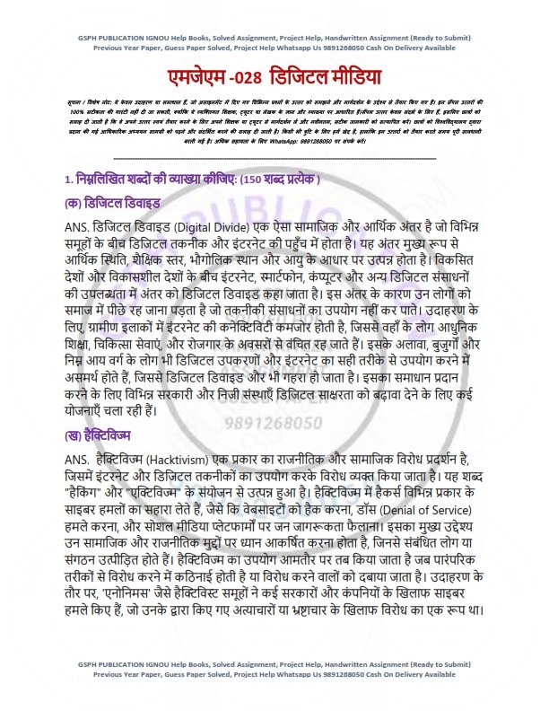 Get IGNOU MJM-28 Solved Assignment 2025 Hindi Medium Download able PDF