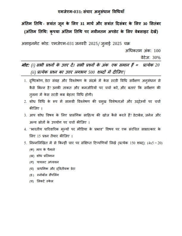 Product | IGNOU MJM-31 Solved Assignment 2025 Hindi Medium |