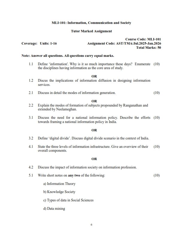 Get IGNOU MLI-101 Solved Assignment 2025-26 English Medium