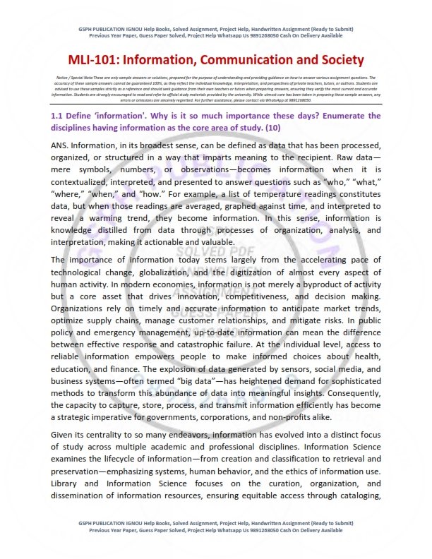 Product IGNOU MLI-101 Solved Assignment 2025-26 English Medium
