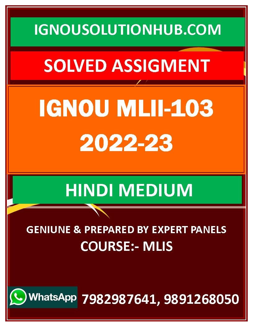 IGNOU MLII-103 SOLVED ASSIGNMENT 2022-23 HINDI MEDIUM